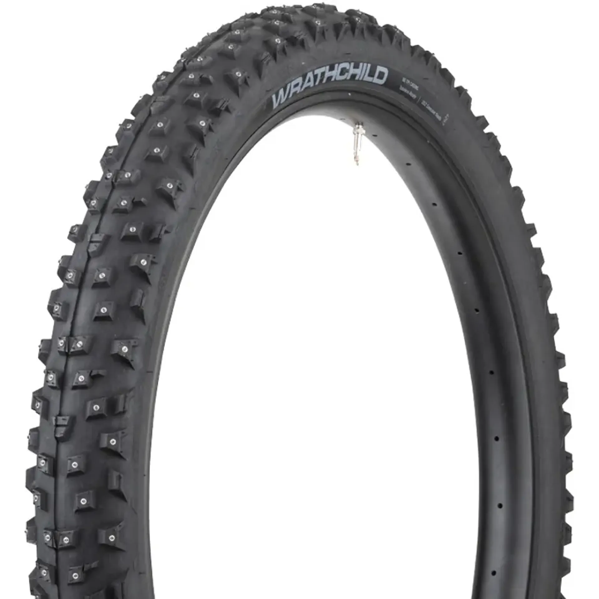 Deep center lugs aggressively claw into unconsolidated snow for extreme acceleration and braking traction. Super tall side lugs dig into loose snow to provide predictable and confident cornering. Encounter sheer ice on your ride and Wrathchild’s concave studs tear into the surface.